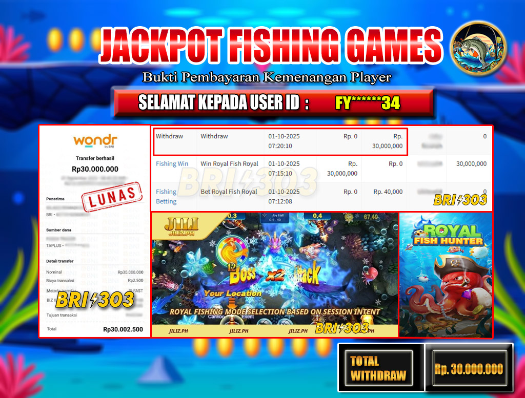 BRI303 JACKPOT FISHING GAMES 01 OKTOBER 2025 Rp.30.000.000,- LUNAS
