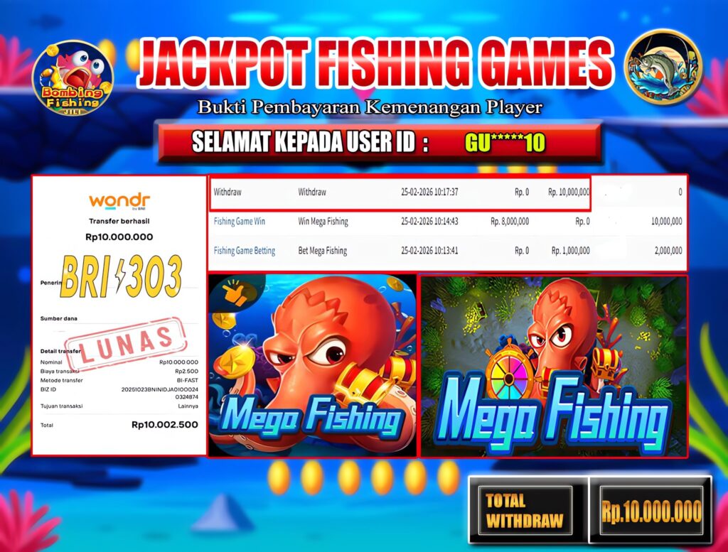 BRI303 JACKPOT FISHING GAMES 25 FEBRUARI 2026 Rp.10.000.000,- LUNAS