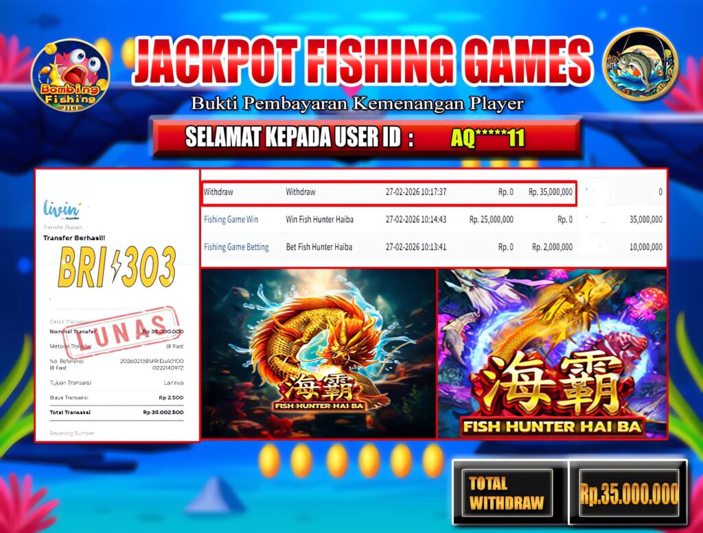 BRI303 JACKPOT FISHING GAMES 27 FEBRUARI 2026 Rp.35.000.000,- LUNAS