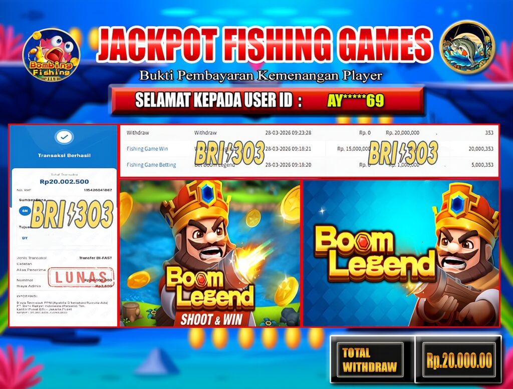 BRI303 JACKPOT FISHING GAMES 28 MARET 2026 Rp. 20.000.000,- LUNAS