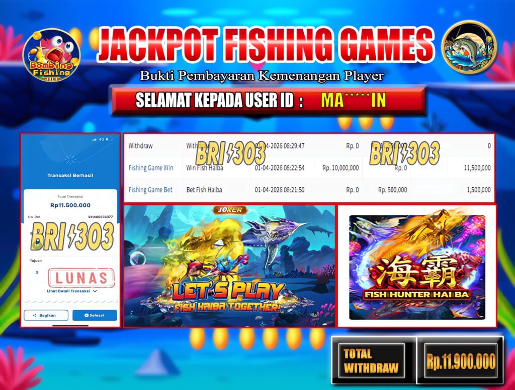BRI303 JACKPOT FISHING GAMES 01 APRIL 2026 Rp. 11.900.000,- LUNAS