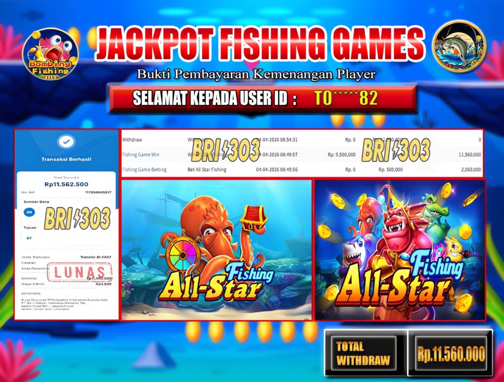 BRI303 JACKPOT FISHING GAMES 04 APRIL 2026 Rp. 11.560.000,- LUNAS