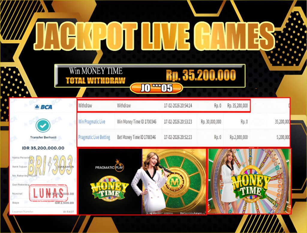 BRI303 JACKPOT LIVE GAMES 17 FEBRUARI 2026 Rp.35,200,000,- LUNAS