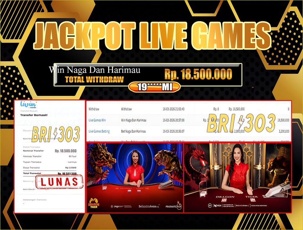 BRI303 JACKPOT LIVE GAMES 16 MARET 2026 Rp.18,500,000,- LUNAS