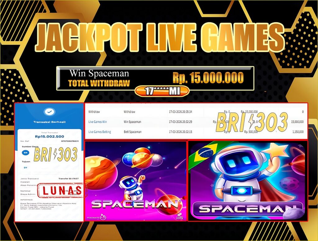 BRI303 JACKPOT LIVE GAMES : Selamat kepada User ID: 17*****MI telah berhasil memenangkan hadiah besar senilai Rp.15.000.000 di permainan JACKPOT LIVE GAMES : SPACEMAN ! Proses pencairan dana hanya memakan waktu 3-5 menit setelah pengisian formulir withdraw. Bukti pembayaran kami adalah SAH/VALID, langsung dari transaksi bank tujuan pemenang.