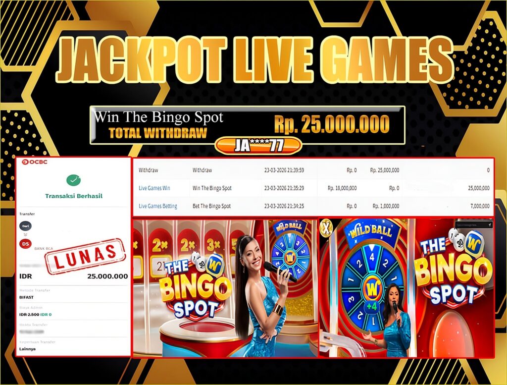 BRI303 JACKPOT LIVE GAMES : Selamat kepada User ID: JA*****77  telah berhasil memenangkan hadiah besar senilai Rp. 25.000.000 di permainan JACKPOT LIVE GAMES : THE BINGO SPOT! Proses pencairan dana hanya memakan waktu 3-5 menit setelah pengisian formulir withdraw. Bukti pembayaran kami adalah SAH/VALID, langsung dari transaksi bank tujuan pemenang.