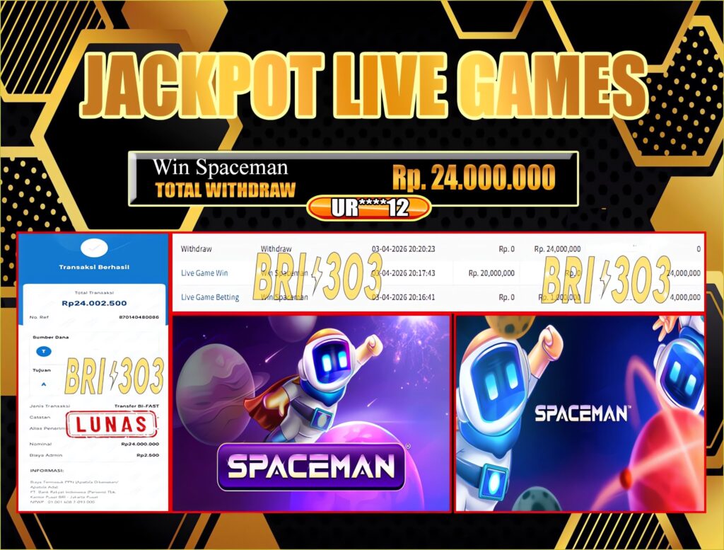 BRI303 JACKPOT LIVE GAMES : Selamat kepada User ID: UR*****12  telah berhasil memenangkan hadiah besar senilai Rp. 24.000.000 di permainan JACKPOT LIVE GAMES : SPACAEMAN ! Proses pencairan dana hanya memakan waktu 3-5 menit setelah pengisian formulir withdraw. Bukti pembayaran kami adalah SAH/VALID, langsung dari transaksi bank tujuan pemenang.