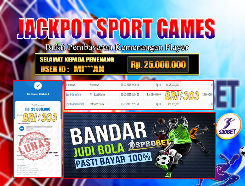 BRI303 JACKPOT SPORT GAMES 26 OKTOBER 2025 Rp.25.000.000,- LUNAS
