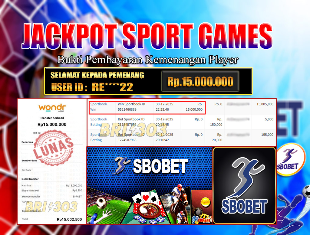 BRI303 JACKPOT SPORT GAMES 30 DESEMBER 2025 Rp.15,000.000,- LUNAS
