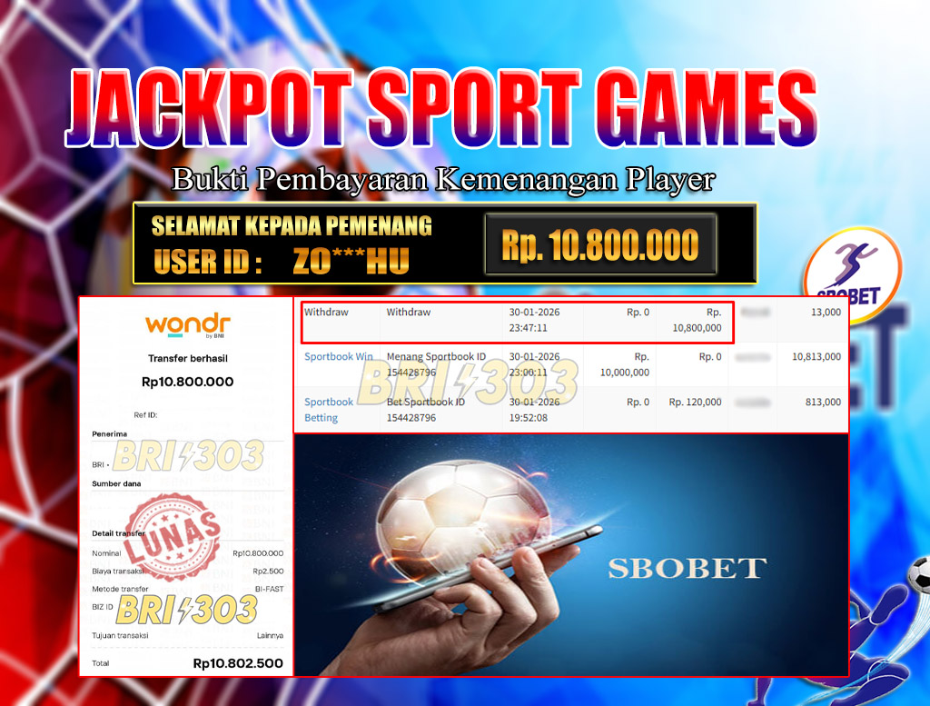 BRI303 JACKPOT SPORT GAMES 30 JANUARI 2026 Rp.10,800.000,- LUNAS