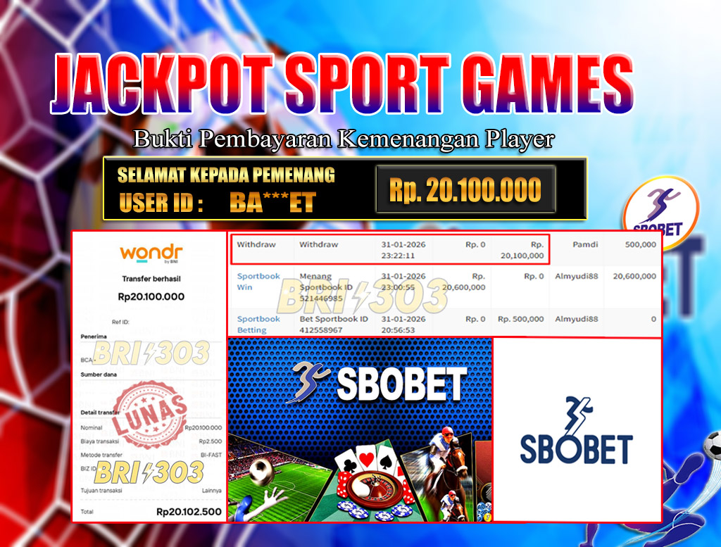 BRI303 JACKPOT SPORT GAMES 31 JANUARI 2026 Rp.20,100.000,- LUNAS