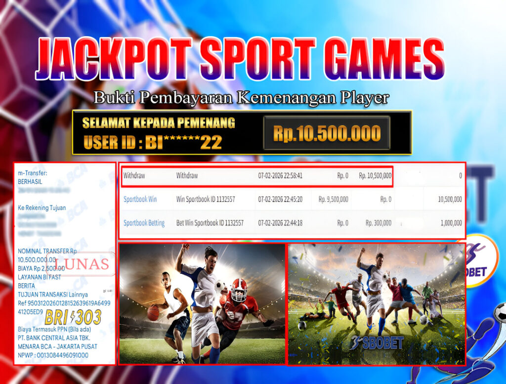 BRI303 JACKPOT SPORT GAMES 07 FEBRUARI 2026 Rp. 10.500.000,- LUNAS