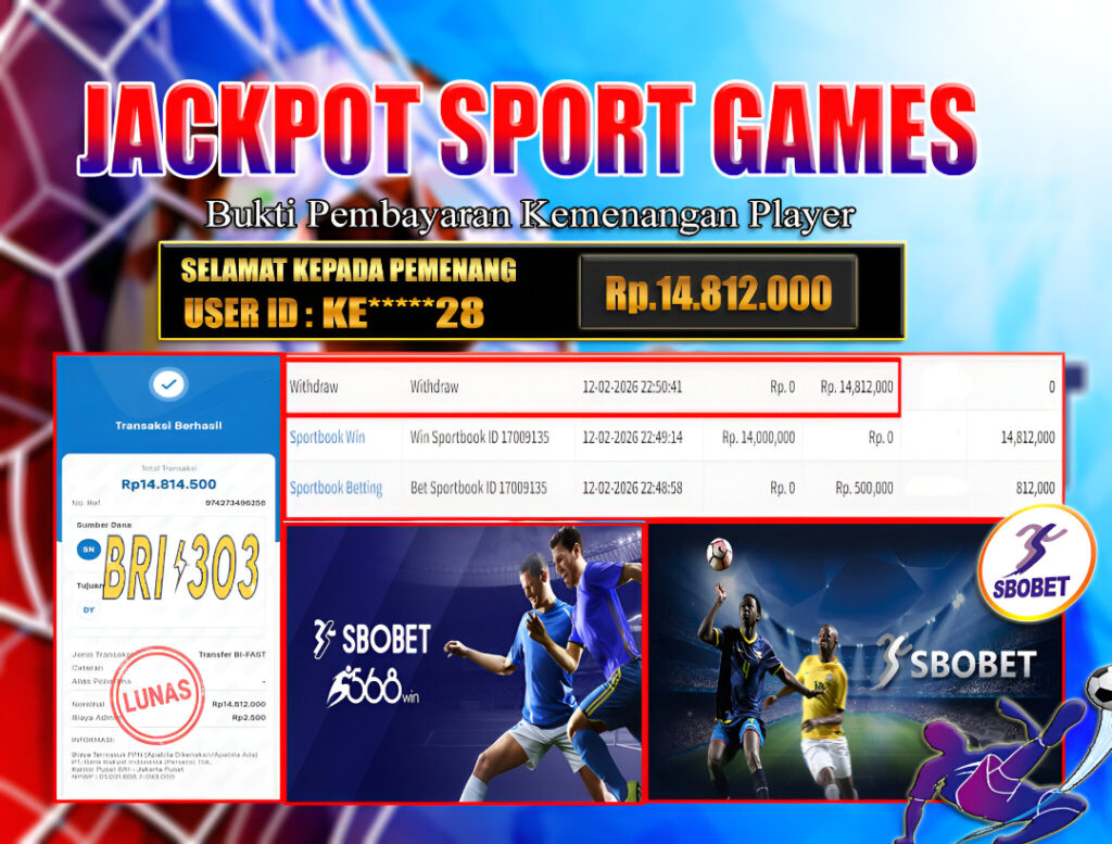 BRI303 JACKPOT SPORT GAMES 12 FEBRUARI 2026 Rp. 14.812.000,- LUNAS