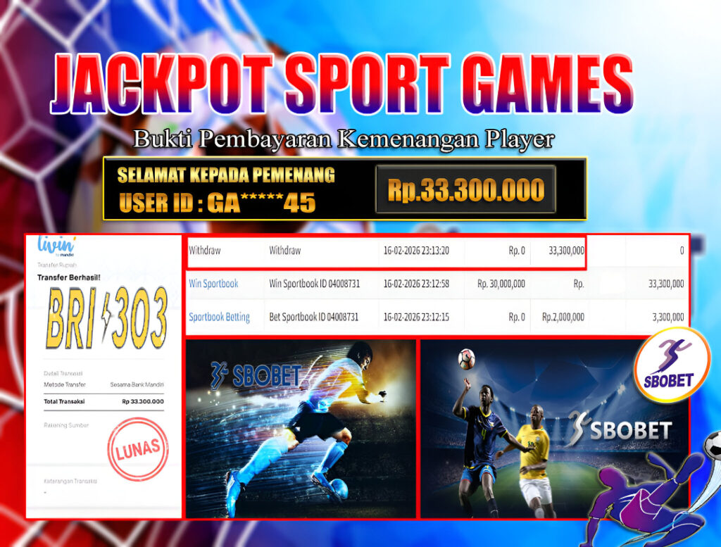 BRI303 JACKPOT SPORT GAMES 16 FEBRUARI 2026 Rp.33.300.000,- LUNAS