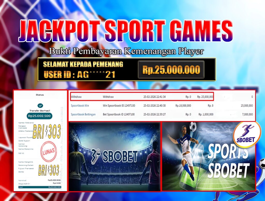 BRI303 JACKPOT SPORT GAMES 25 FEBRUARI 2026 Rp.25.000.000,- LUNAS
