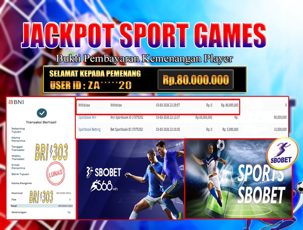 BRI303 JACKPOT SPORT GAMES 03 MARET 2026 Rp. 80.000.000,- LUNAS