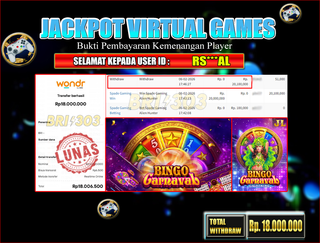 BRI303 VIRTUAL GAMES 06 FEBRUARI 2026 Rp. 18,000,000,- LUNAS