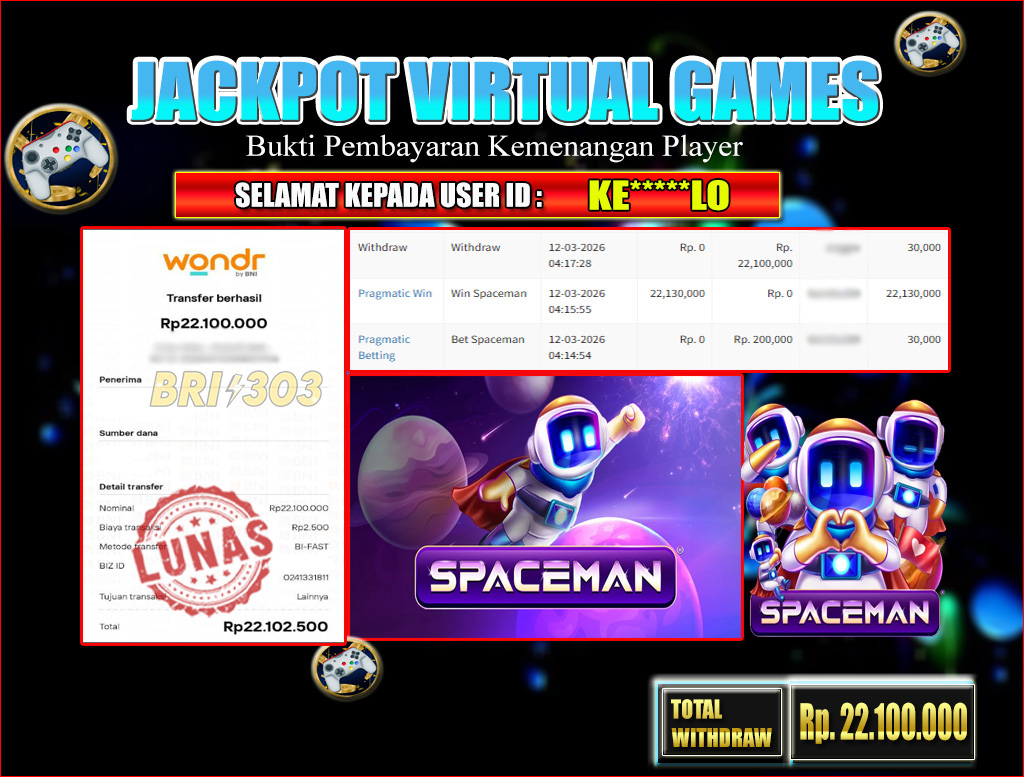 BRI303 JACKPOT VIRTUAL GAMES 12 MARET 2026 Rp. 22.100.000,- LUNAS