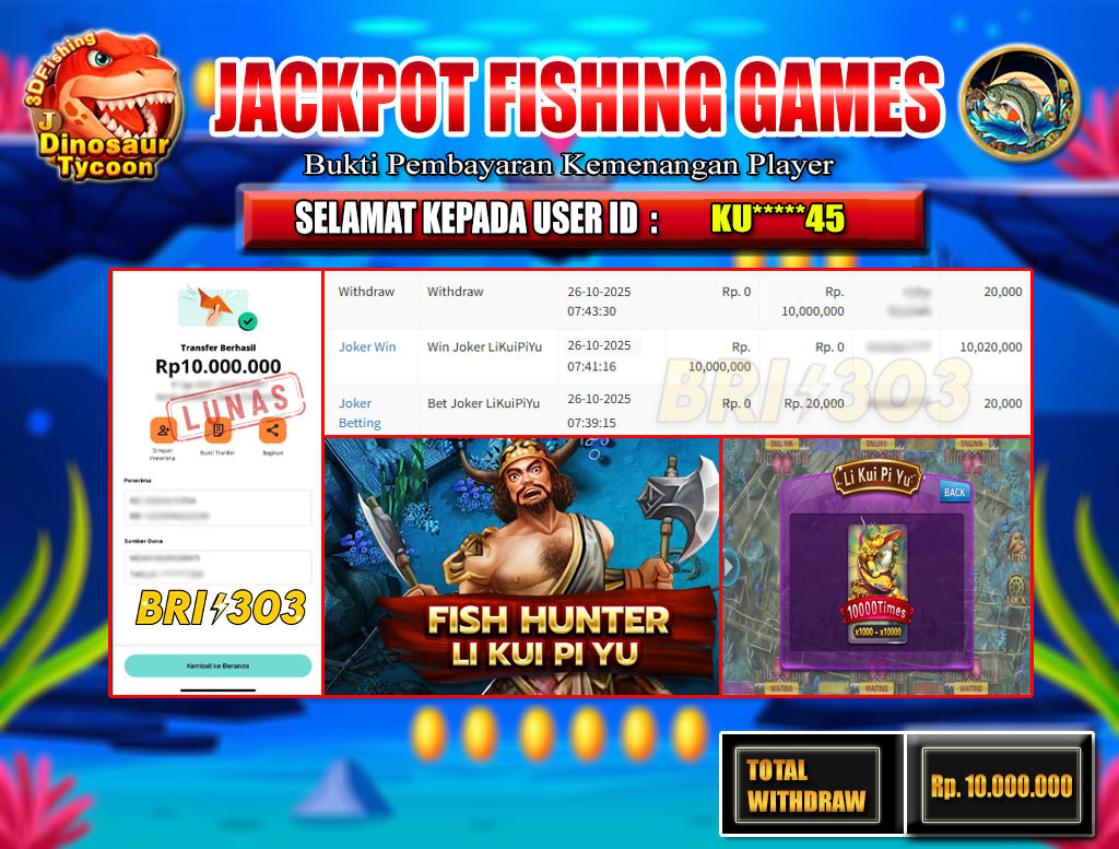 BRI303 JACKPOT FISHING GAMES 26 OKTOBER 2025 Rp.10.000.000,- LUNAS