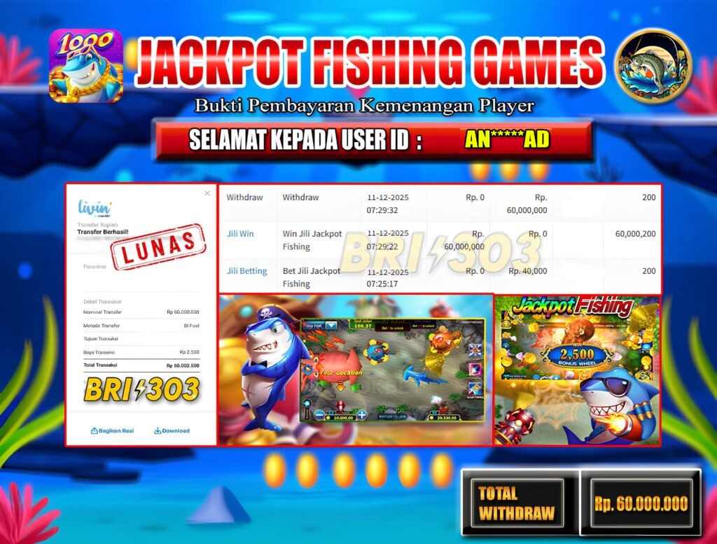 BRI303 JACKPOT FISHING GAMES 11 DESEMBER 2025 Rp.60.500.000,- LUNAS