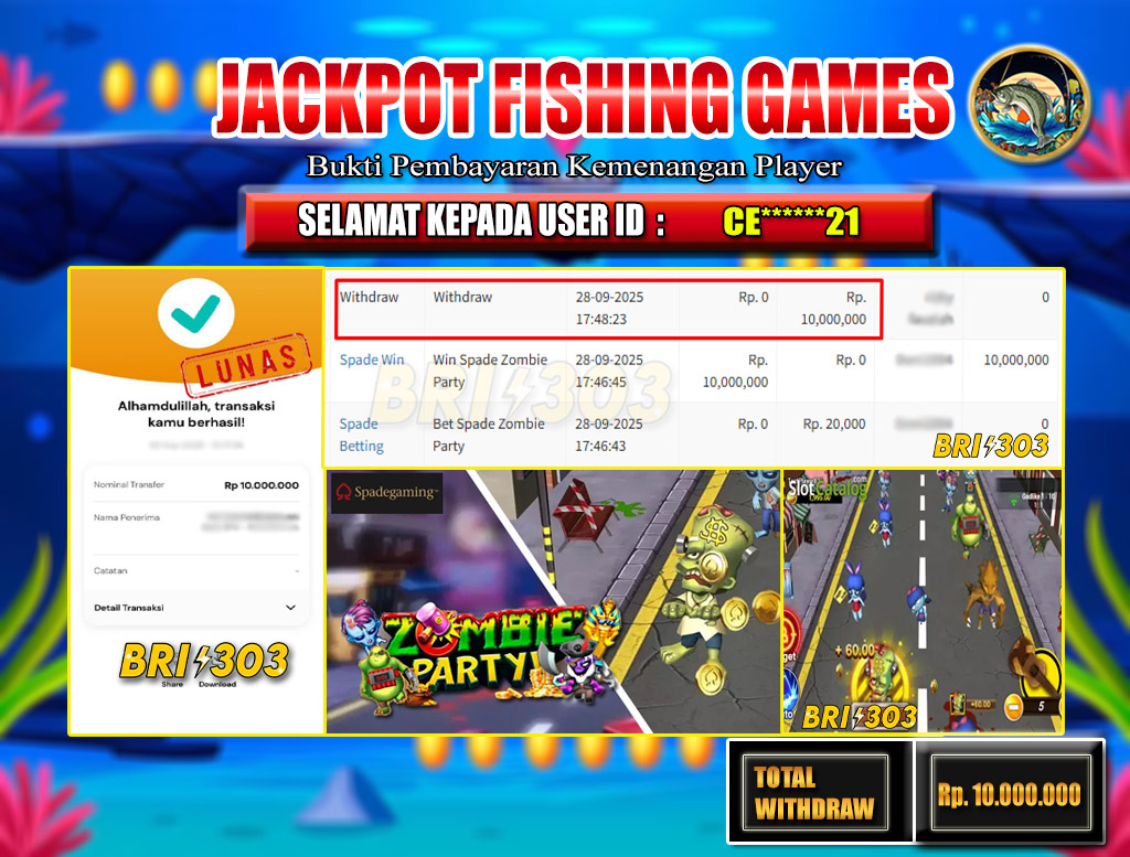BRI303 JACKPOT FISHING GAMES 28 SEPTEMBER 2025 Rp.10.000.000,- LUNAS