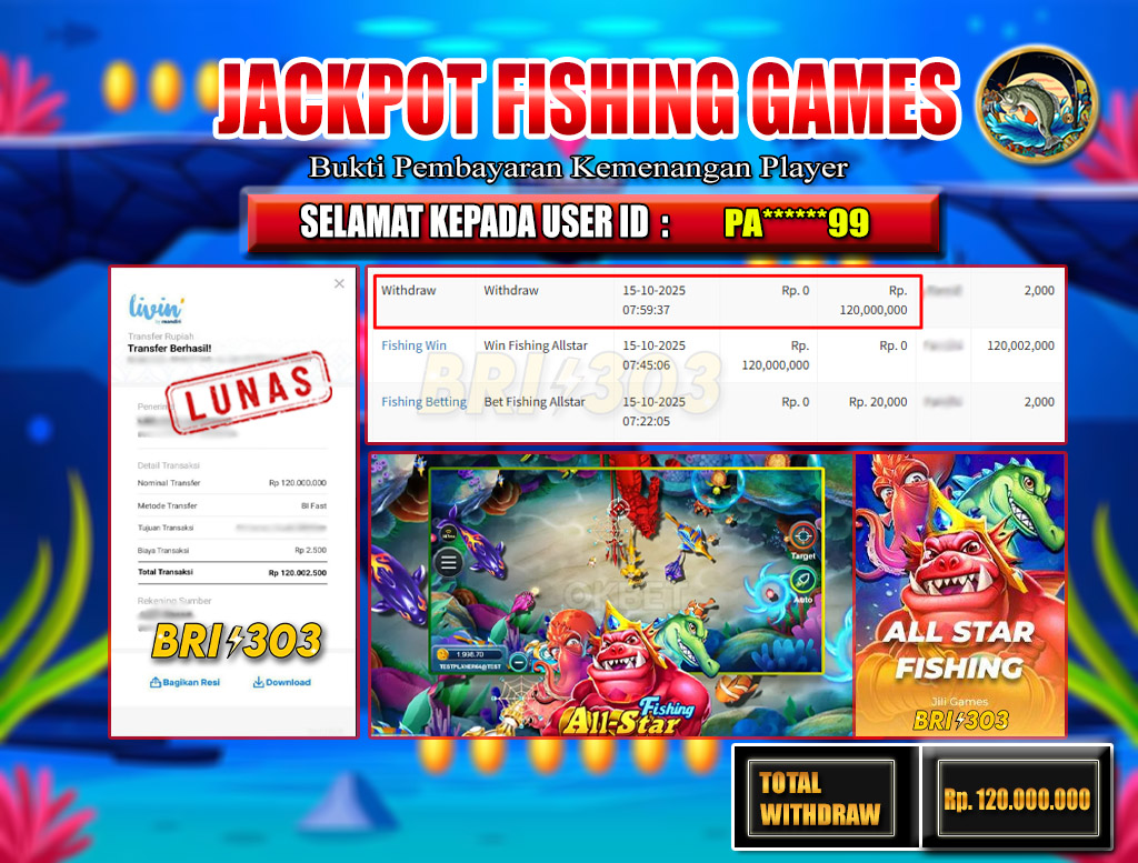 BRI303 JACKPOT FISHING GAMES 15 OKTOBER 2025 Rp.120.000.000,- LUNAS