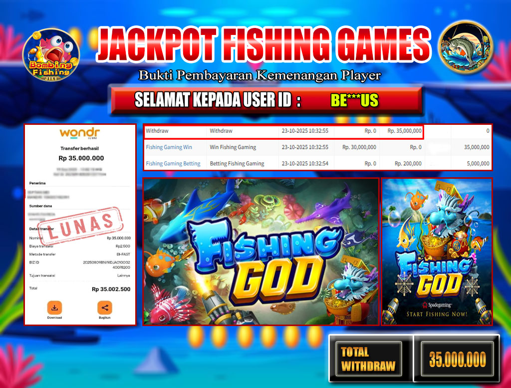 BRI303 JACKPOT FISHING GAMES 23 OKTOBER 2025 Rp.35.000.000,- LUNAS