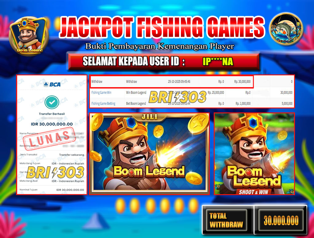 BRI303 JACKPOT FISHING GAMES 25 OKTOBER 2025 Rp.30.000.000,- LUNAS