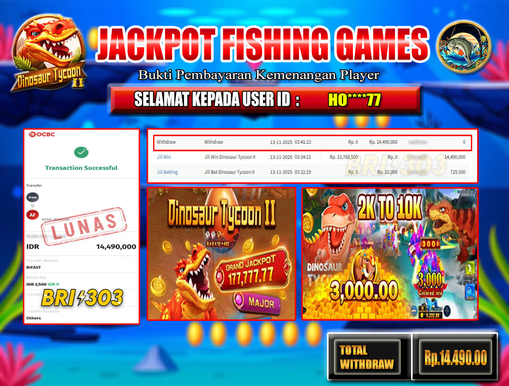 BRI303 JACKPOT FISHING GAMES 13 NOVEMBER 2025 Rp.14.490.000,- LUNAS