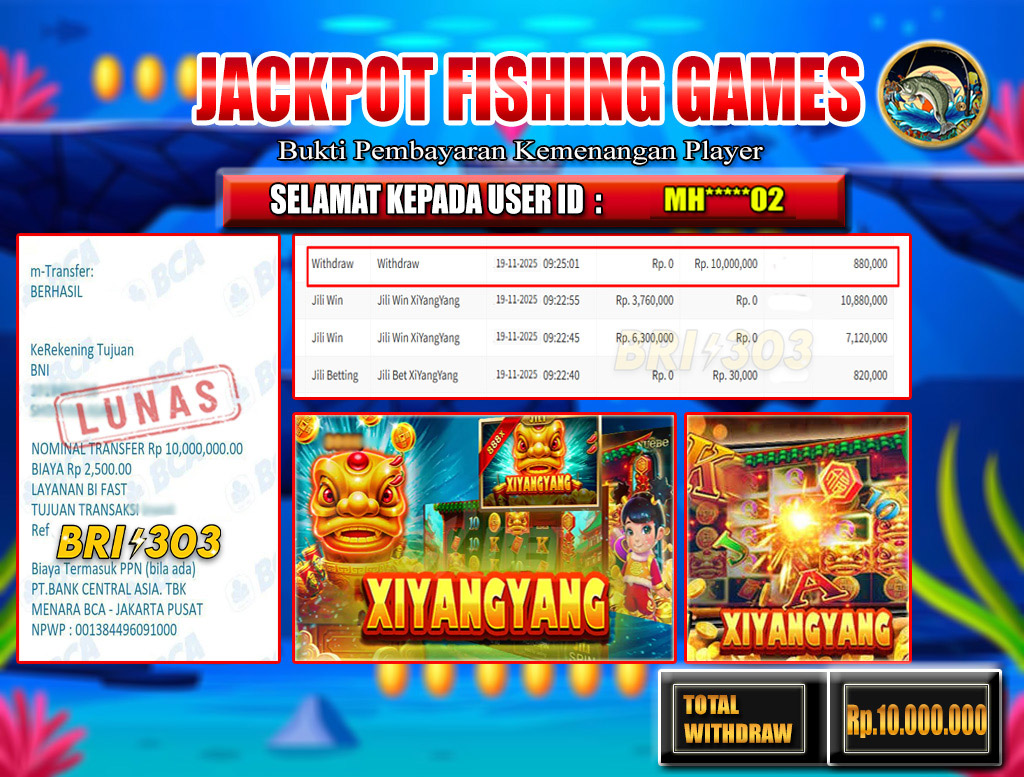 BRI303 JACKPOT FISHING GAMES 19 NOVEMBER 2025 Rp.10.000.000,- LUNAS
