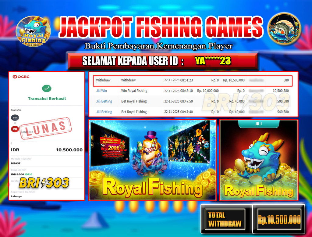 BRI303 JACKPOT FISHING GAMES 22 NOVEMBER 2025 Rp.10.500.000,- LUNAS