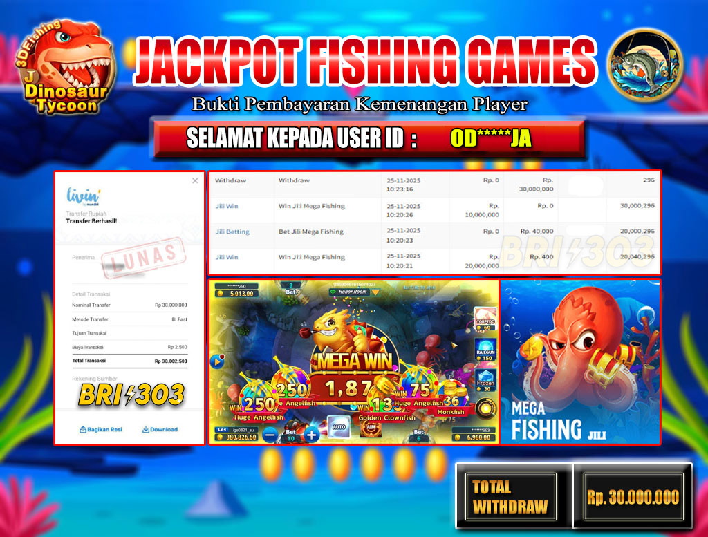 BRI303 JACKPOT FISHING GAMES 25 NOVEMBER 2025 Rp.30.000.000,- LUNAS