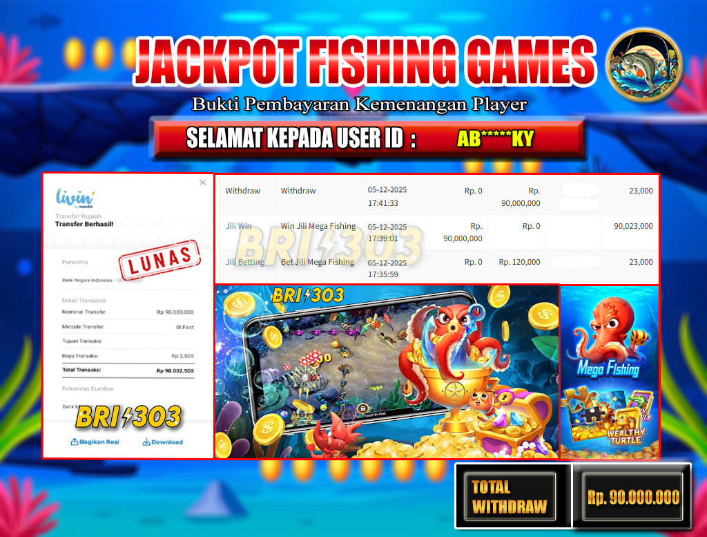 BRI303 JACKPOT FISHING GAMES 05 DESEMBER 2025 Rp.90.000.000,- LUNAS