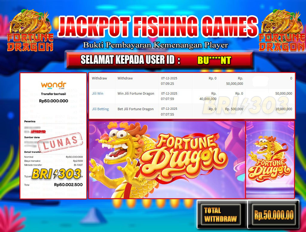 BRI303 JACKPOT FISHING GAMES 07 DESEMBER 2025 Rp.50.000.000,- LUNAS