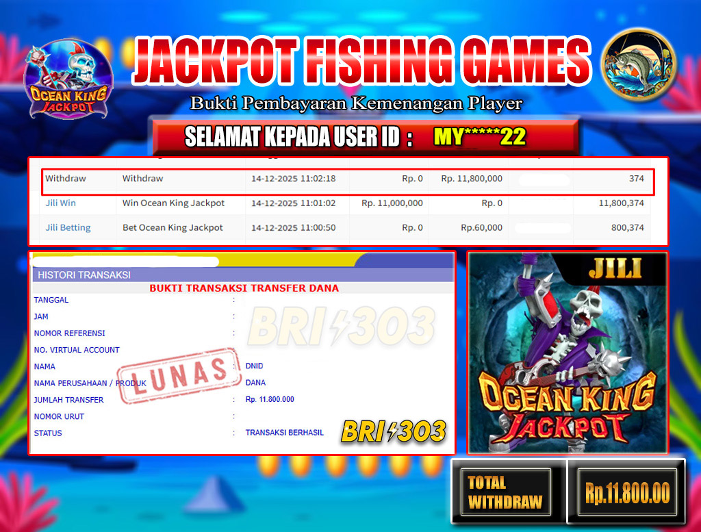 BRI303 JACKPOT FISHING GAMES 14 DESEMBER 2025 Rp.11.800.000,- LUNAS