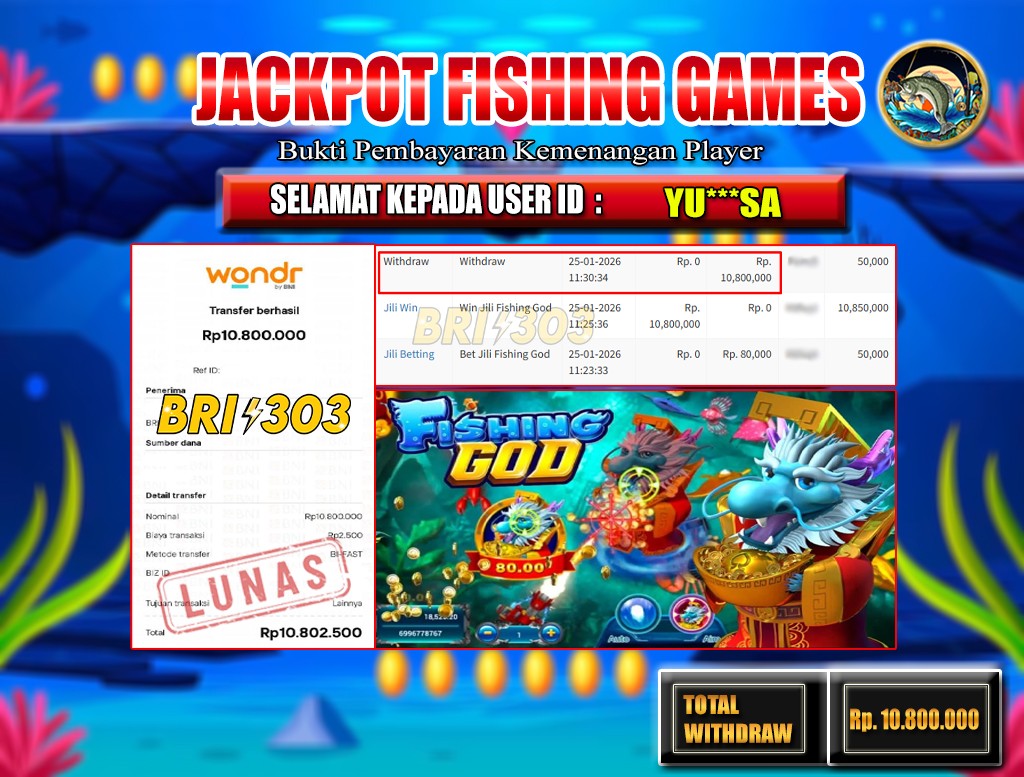 BRI303 JACKPOT FISHING GAMES 25 JANUARI 2026 Rp.10.800.000,- LUNAS