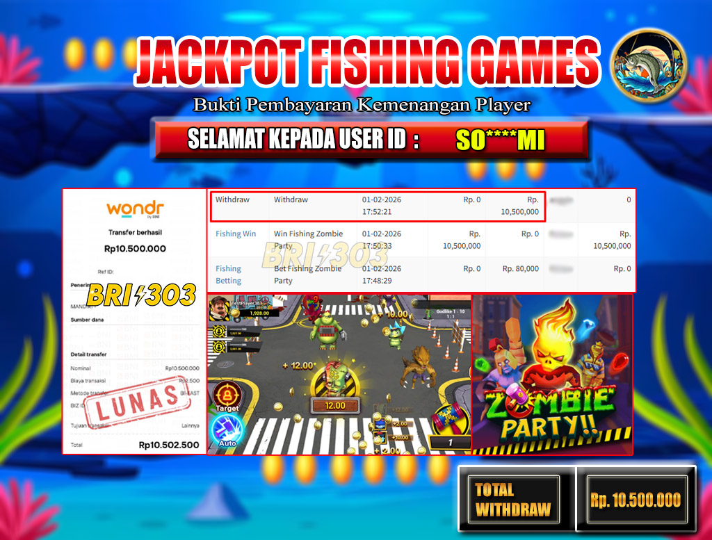 BRI303 JACKPOT FISHING GAMES 01 FEBRUARI 2026 Rp.10.500.000,- LUNAS