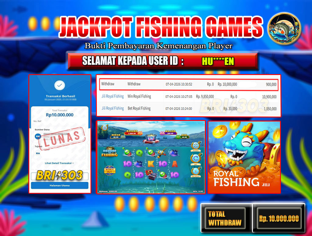 BRI303 JACKPOT FISHING GAMES 07 APRIL 2026 Rp. 10.000.000,- LUNAS