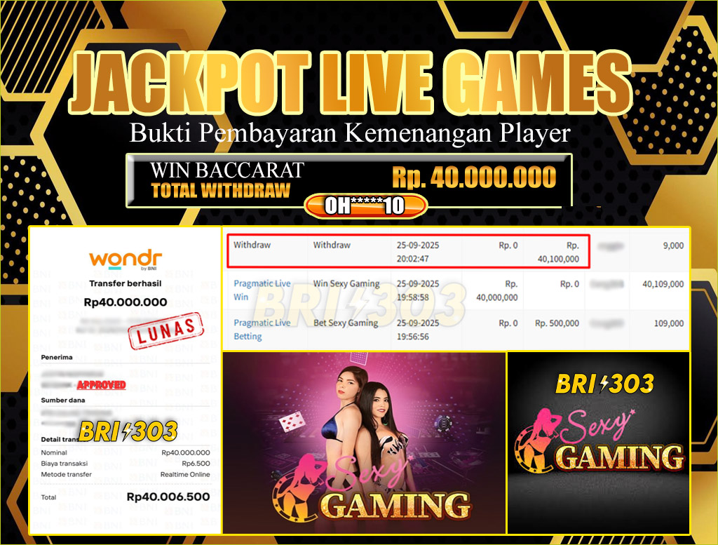 BRI303 JACKPOT LIVE GAMES 25 SEPTEMBER 2025 Rp. 40.000.000,- LUNAS
