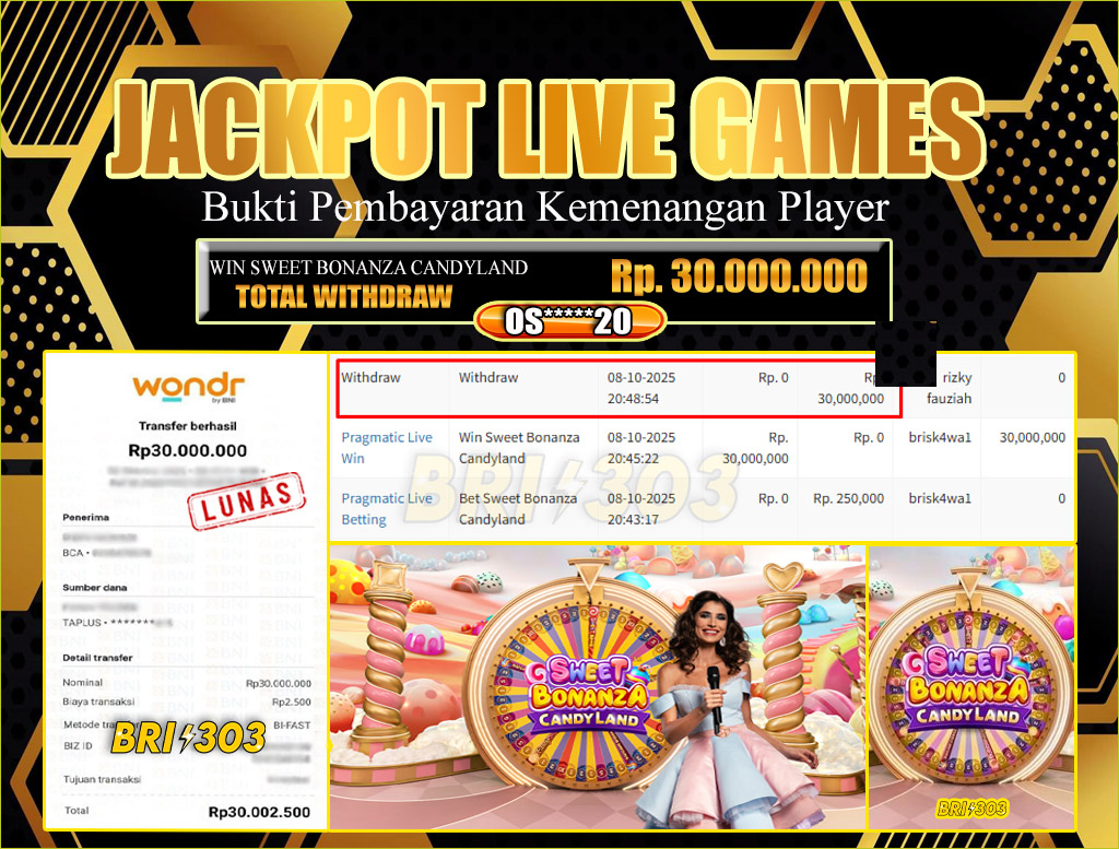 BRI303 JACKPOT LIVE GAMES 08 OKTOBER 2025 Rp. 30.000.000,- LUNAS