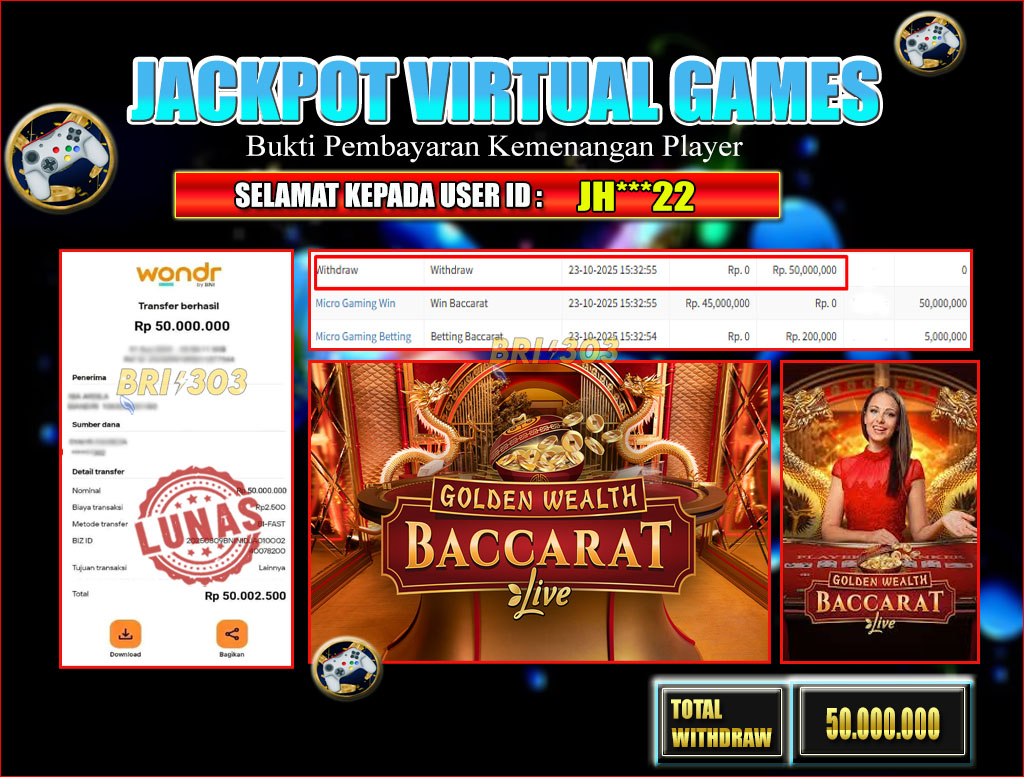 BRI303 JACKPOT LIVE GAMES 23 OKTOBER 2025 Rp. 50.000.000,- LUNAS