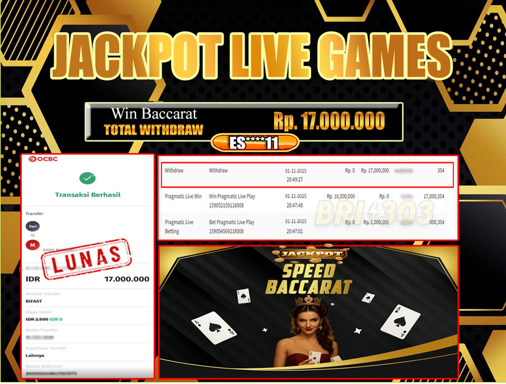 BRI303 JACKPOT LIVE GAMES 01 NOVEMBER 2025 Rp. 17.000.000,- LUNAS