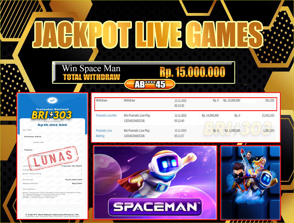 BRI303 JACKPOT LIVE GAMES 12 NOVEMBER 2025 Rp. 15.000.000,- LUNAS