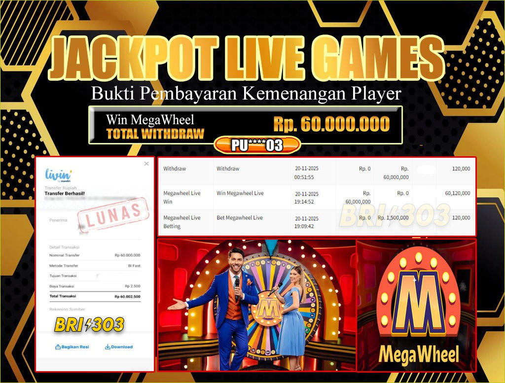 BRI303 JACKPOT LIVE GAMES 20 NOVEMBER 2025 Rp. 60.000.000,- LUNAS