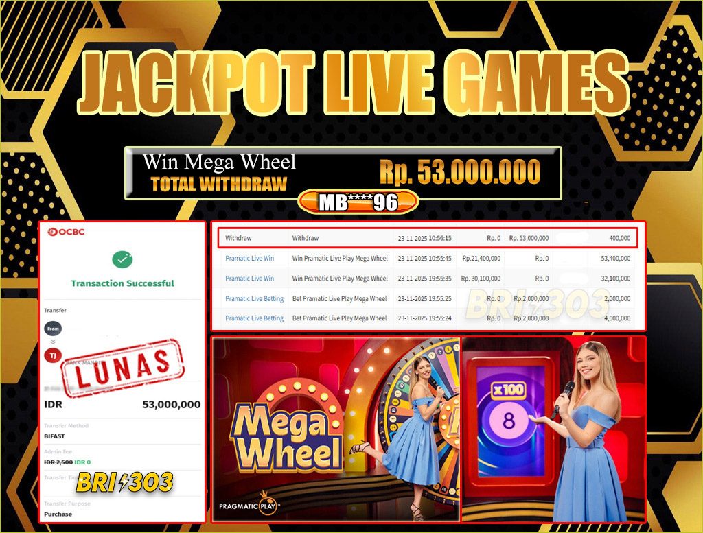 BRI303 JACKPOT LIVE GAMES 23 NOVEMBER 2025 Rp. 53.000.000,- LUNAS