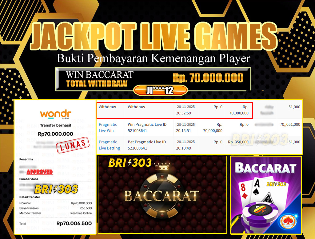 BRI303 JACKPOT LIVE GAMES 28 NOVEMBER 2025 Rp. 70.000.000,- LUNAS