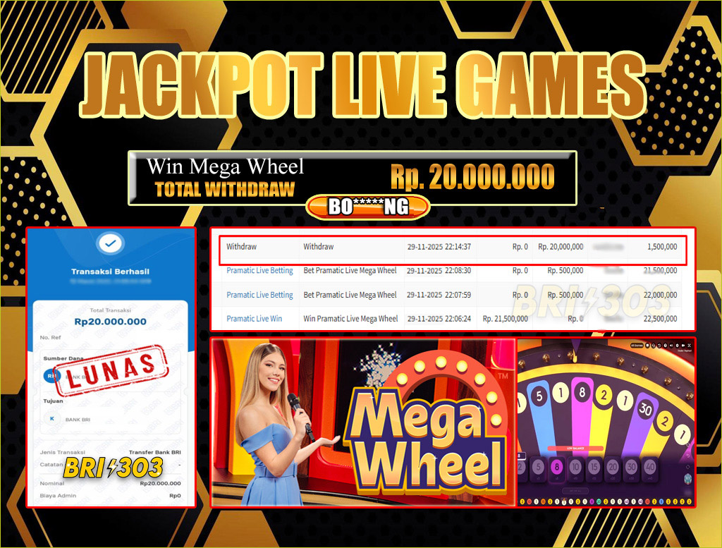 BRI303 JACKPOT LIVE GAMES 29 NOVEMBER 2025 Rp. 20.000.000,- LUNAS