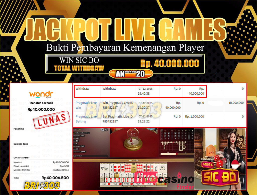 BRI303 JACKPOT LIVE GAMES 07 DESEMBER 2025 Rp. 40.000.000,- LUNAS