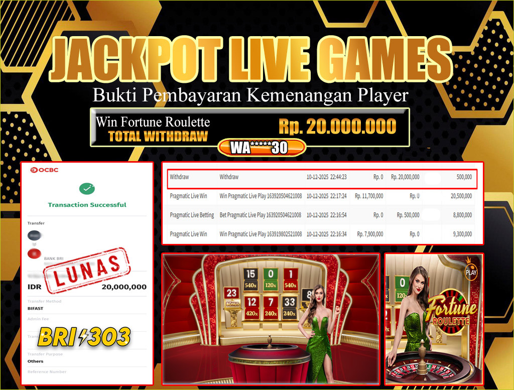 BRI303 JACKPOT LIVE GAMES 10 DESEMBER 2025 Rp. 20.000.000,- LUNAS