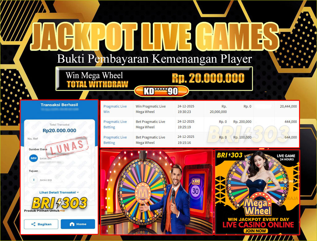 BRI303 JACKPOT LIVE GAMES 24 DESEMBER 2025 Rp. 20.000.000,- LUNAS